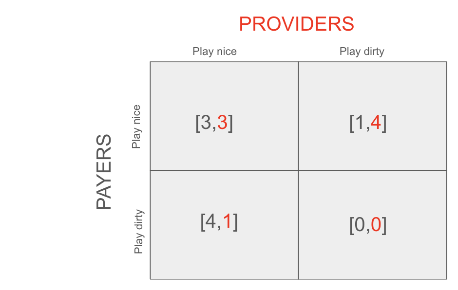 Since this game is played many times between new payers and providers interacting for the first time, its bleak outcome explains why many payers and providers alike feel like the other party is untrustworthy.