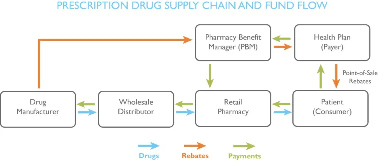 The trend over the last 20 years has been towards consolidation of retail pharmacies and PBMs, so there are now three big vertically integrated PBM-pharmacies that handle 80% of prescriptions in the US: CVS Caremark, Express Scripts, and OptumRx5. The general idea is if these companies own both the PBM and retail pharmacies, they can capture more of the margins and improve efficiency when pharmacies and PBMs have to communicate.