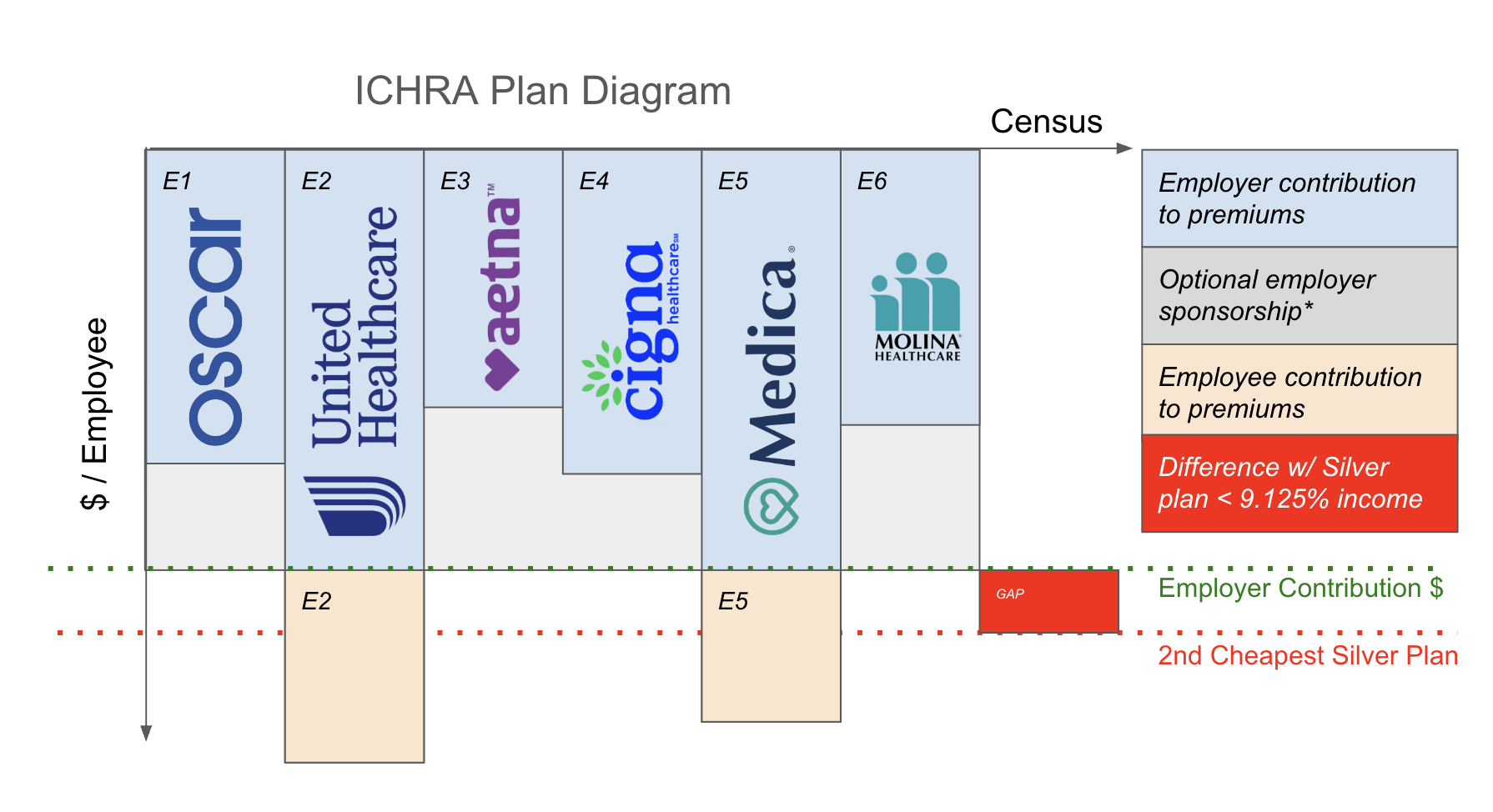 Extending the idea of an HRA, ICHRAs essentially allow for companies to go all-in on this wrapper account, having employees choose their own insurance plan and pay those premiums with the funds the employer sets aside in the ICHRA from this defined maximum contribution.