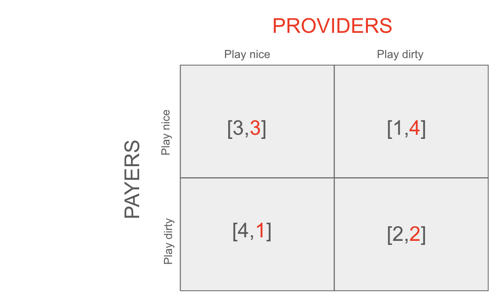 Since this game is played many times between new payers and providers interacting for the first time, its bleak outcome explains why many payers and providers alike feel like the other party is untrustworthy.